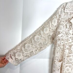 Chico's Trench Jacket Women XL Cream Floral Eyelet Lace Sheer Long Sleeve Coat 3