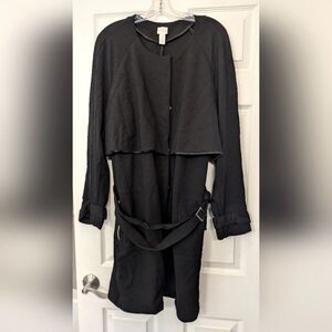 Chico’s Trench Topper long belted snap button cardigan Jacket Black Plus 4/ XXL 20/22 Cottagecore Stretch Whimsygoth business casual, professional, tailored, sharp, office, polished, structured, conservative, minimalist, sleek, formal, business