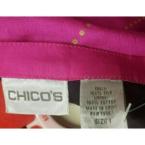 Chicos Tribal Rhythm Nellie Skirt, Size 1 Med, Pink Purple, Silk, Cotton lined
