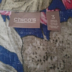Chico's Tropical Botanical Print 100% Linen Button Front Blouse Size 3 XL