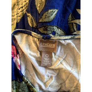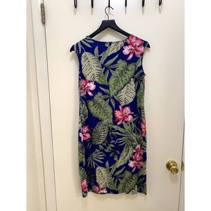 Chico's, Tropical Print Midi Dress, Blue/Pink/Green, Chico's Size 0 (US Small)