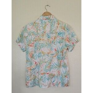 The shirt is size 0 and fits regular. It has a basic style with button accents and is not vintage. The garment care is easy and the shirt is perfect for all seasons. This Chico's shirt is a great addition to any wardrobe and perfect for those who love colorful and Hawaiian themed clothes.