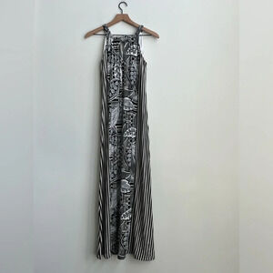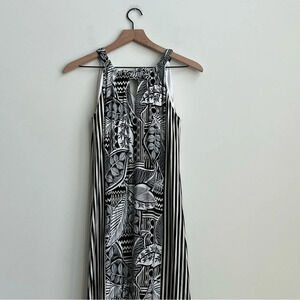 Chico’s Tropical Print Striped Maxi Dress Halter Stretch Jersey Size 0 (4-6)