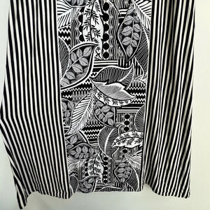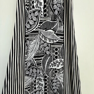With striped sides (that also happen to be visually slimming) and a gorgeous tropical-inspired print, this olack-and-white maxi dress is a summertime stunner-you'll want to wear it to every event. The A-line design is finished with a chic keyhole neckline.