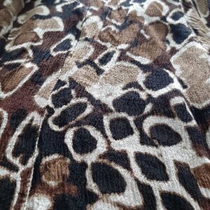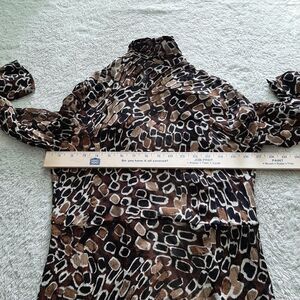 Chicos Tunic 0 Small Black Brown Geometric Print 100% Silk Button Art to Wear