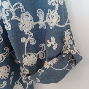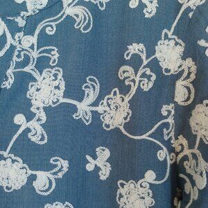 Chicos Blue Chambray White Embroidered Tunic Blouse