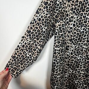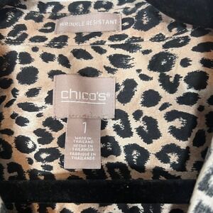 Chico’s Tunic Shirt 1 M Leopard Print Wrinkle Resistant Long Sleeve Cotton Tan