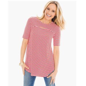 Chico's Tunic Size 1 (8) Isla Peek A Bo Red Stripe NWOT