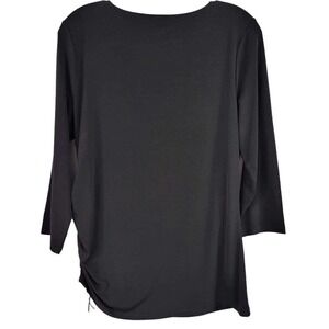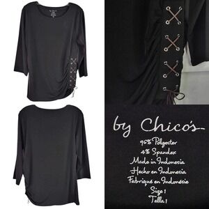 Chicos Tunic Size 1 US 8 Lace Up Side Top Black Stretch Knit 3/4 Sleeve