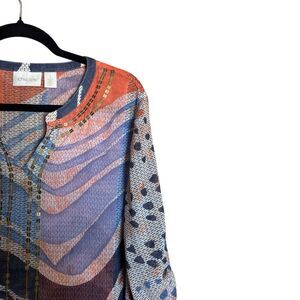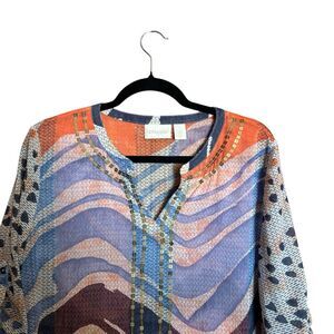 Chicos Tunic Top Medium 1 Multicolor Embellished Mixed Print Art To Wear Blouse