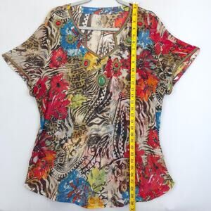 Chicos Size 2.5 = Women14 Tunic Top Mix Print Silk Beaded Colorful Sheer Artsy Boho Whimsy