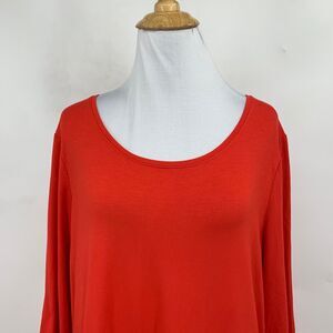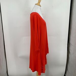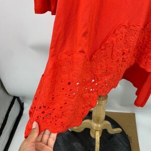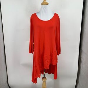 Chicos Tunic Top Womens 1 Red Lace Trim Long Sleeve Scoop Neck Asymmetrical Hem