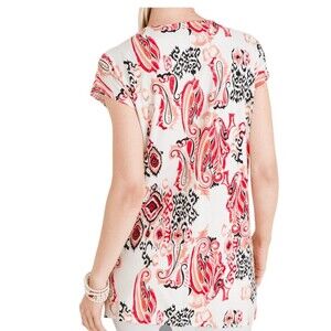 Chico’s Tunic Top Women’s 2 Paisley Ikat Stretch Knit Cap Sleeve Boho Blouse