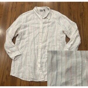 Chico's Tunoc Top Women's XL (3) Striped 100% Linen Blouse Button Up Shirt