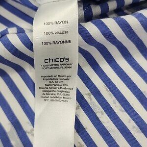 Elevate your wardrobe with this stylish Chico's women's top in size XL. The blue striped pattern and collared neckline give it a classic, yet modern look perfect for travel, casual outings, or workwear. The long sleeves with classic/fitted sleeves and button closure make it versatile for all seasons.
