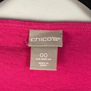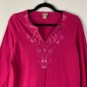 Chicos Tunic Womens 00 US XS Pink Embroidered Cotton Linen 3/4 Sleeves Top