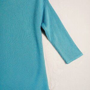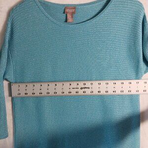 Chico's, Turquoise Blue, Sparkle, Ribbed Knit Top with 3/4 Sleeves, Size Small