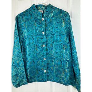 Chicos Turquoise & Gold Button-Up Silk Blend Jacket - Size 1 or U.S. 8 Asian Ins