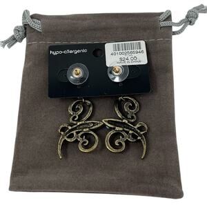 Chico’s Turquoise Lizard Drop Earrings – Bronze-Tone Scroll Design (Flaw)