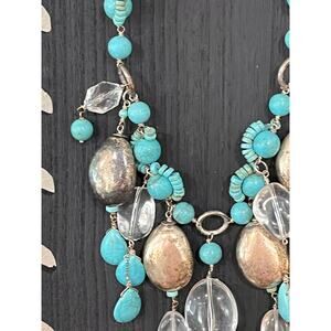 Chico’s Turquoise Statement Necklace Boho Southwestern Mixed Bead Silver Tone