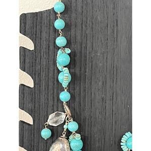 Elevate your look with this stunning Chico’s turquoise statement necklace, featuring a striking mix of faux turquoise beads, natural stone-style ovals, and faceted clear acrylic crystals. The layered drop design gives this piece a bold, boho-chic presence that pairs beautifully with both casual and dressy outfits.