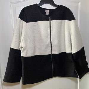 Chico’s Tweed Black White Color Blocked Jacket size 4 20/22 NWT $149 Classy