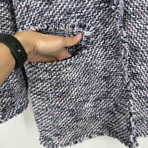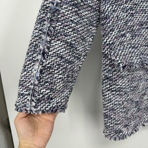 Chicos Tweed Blazer Jacket Size 3 XL Boucle Knit Purple Fringe Academia Preppy
