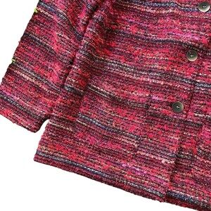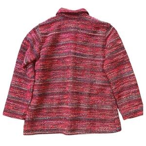 Chicos Tweed Boucle Metallic Shimmer Striped Buttoned Jacket Red Size 1/M
