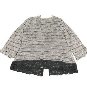 Chico's Tweed Gray/Black Open Cardigan With Lace, Size 3