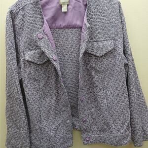 Chico's Tweed Textured Button Front Jacket Cotton Blend Purple Size 2 US Large