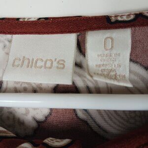 Chicos Twist Front Scrolls Top Women’s Size 0 Small Keyhole Neck 3/4 Sleeve