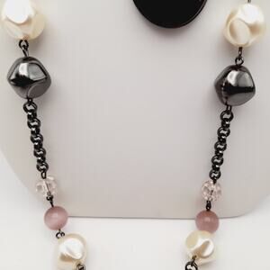 Chico's Two Strand Long Glass Bead Pendant Necklace, Gunmetal Gray