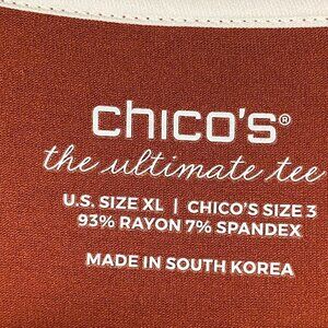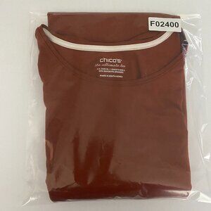 Chicos Ultimate T Shirt Womens 3 US XL Rust Long Sleeve Crew Neck