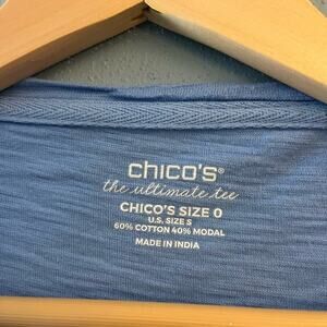 Chico’s light blue Ultimate Tee. 3/4 sleeves and buttons on shoulders. Size 0/S