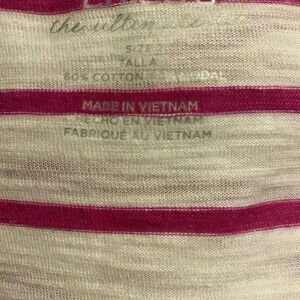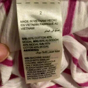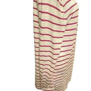Chicos Ultimate Tee Cardigan in pink & white striped with side slit pockets Machine Wash Size 2 (large) 60% cotton 40% modal
