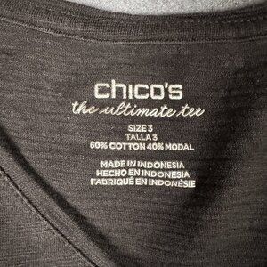 Chicos Ultimate Tee Shirt Womens 3 XL Black V Neck 3/4 Sleeve Modal Cotton Soft