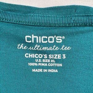 Chicos Ultimate Tee Size XL Turquoise Short Sleeve 100% Pima Cotton Pullover