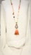 Chico's Unique Boho Beaded Necklace with Tassel Peach Gold Silver