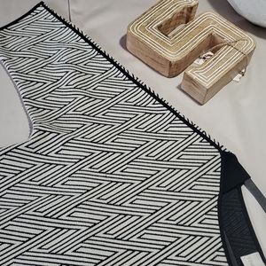 Details along the neckline down to the sleeve slits at the bottom of the shirt