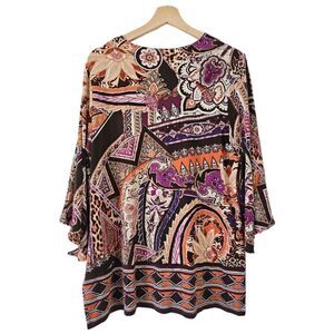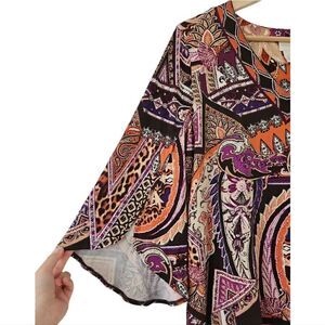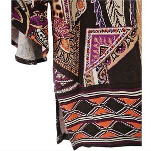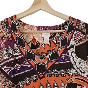 Chico's V Neck Paisley Print Split Cuff Scarf Print 3/4 Sleeve Top Shirt Sz 8