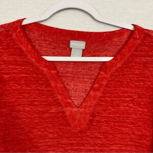 Chico's V Neck Red 100% Linen Lightweight Stretch Pullover Top Large/2
