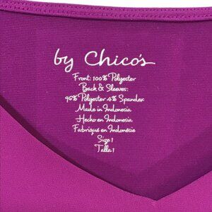 Tunic style top by Chico's with a v-neck and layered bottom on the front. It also had 3/4 length sleeves. The size is Chico's 1 which is equal to a medium. It measures pit to pit 20.5 inches and length is 27 inches. Good condition.
