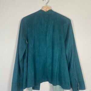 Chicos Vegan Faux Suede Jacket Womens 2 Teal/turquoise Long Sleeve Snap closure
