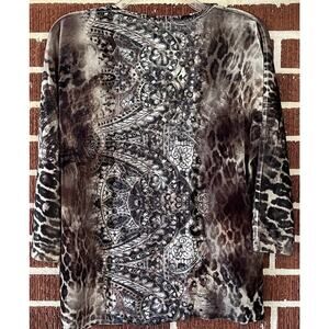 Chico’s Velour Feeling Embellished Multi-Patterned Blouse 3/4 Sleeves Size 0 (S)