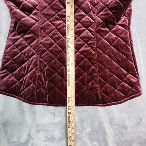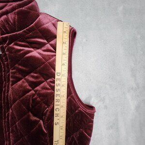 Chicos Velour Vest Small Burgundy Quilted Layer Mock Neck Zip Cottage Cozy Warm