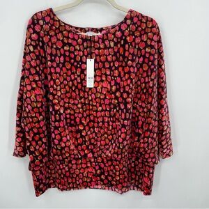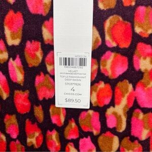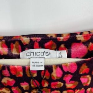 Chico’s Velvet Banded Hem Print Top deep raisin dolman Sz 4 XXL
