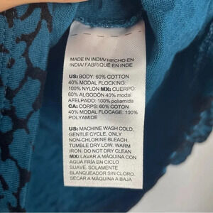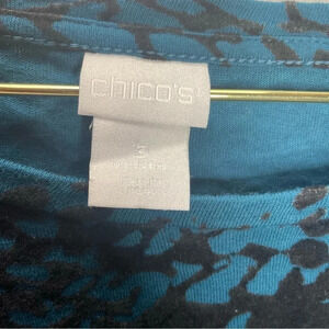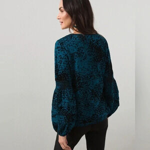 Chicos Velvet Burnout Flocked Sleeve Bohemian Teal Black Top