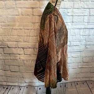 Chico’s Velvet Burnout Jacket Kimono Metallic Sheer Knot Closure Boho