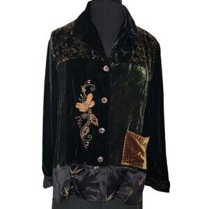 #Chicos #VintageChicos #VelvetJacket #PatchworkShacket #EmbroideredJacket