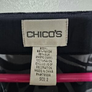 Chico's Velvet Silk Burnout Blouse Black Embroidered Beaded Size 2 Witch Goth Whimsigoth